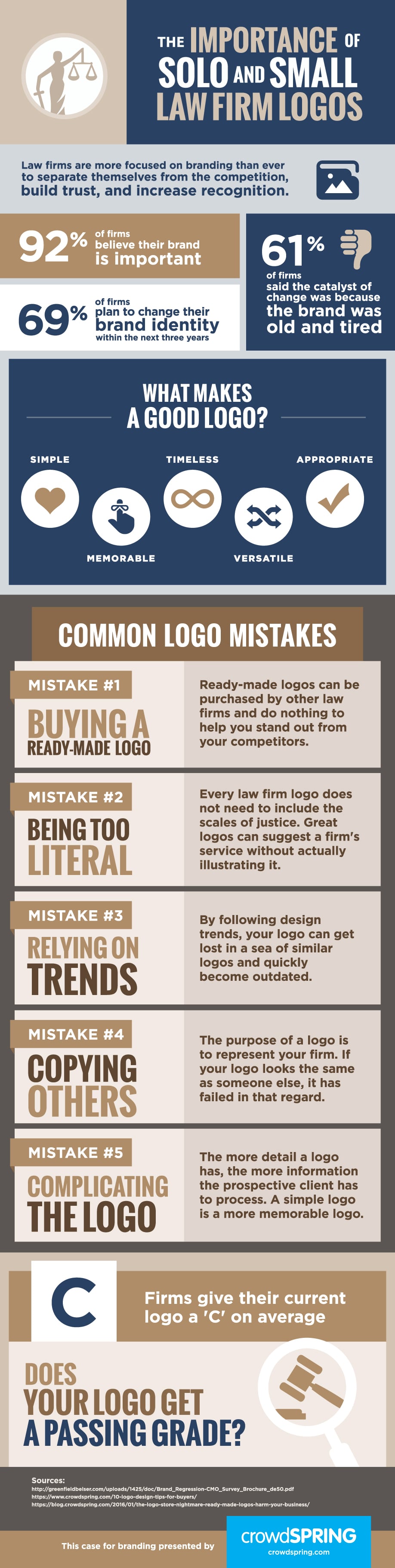 The average law firm self-grades its current logo at a mediocre ‘C.’ And let’s face it, they’re probably being overly generous, glossing over their branding’s true effectiveness.