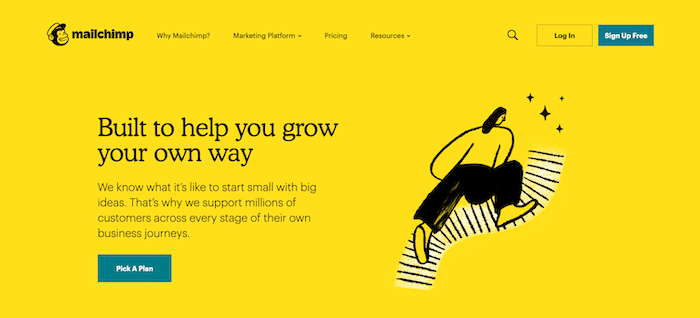 Marketing automation platform MailChimp also uses distinctive hand-drawn illustrations in their web design. You’ll notice that the visual style is completely different from Basecamp’s, helping to demonstrate the versatility of this illustration style.