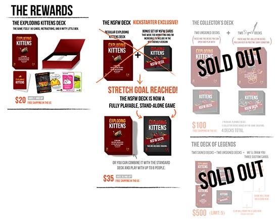 So make sure these vital updates are shown the same care as the rest of your campaign page. Professional email templates and graphics will go a long way toward building trust. The Exploding Kittens card game Kickstarter campaign did an excellent job of tying their updates in with the rest of their design.