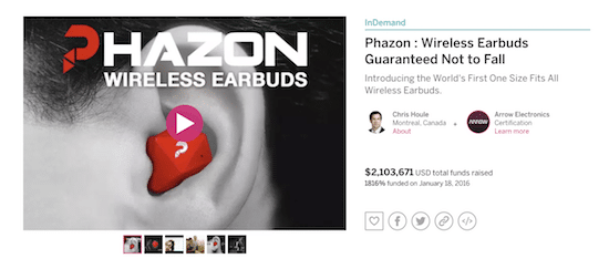 Phazon, a manufacturer of wireless earbuds, was on top of their product imagery game when they earned 1816% of their original Indiegogo fundraising goal.