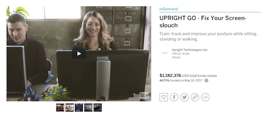 UPRIGHT GO’s Indiegogo campaign did an excellent job of this. Their product graphics are clear and easy to grasp. This was particularly important for their product- a wearable posture tracker that vibrates if you start to slouch- as the tracker itself looks rather nondescript.