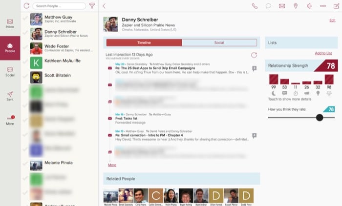 It shares some features with customer relationship management (CRM) apps but is easier to use. The focus is to provide you with everything you need to know about your contacts without burying you in data.