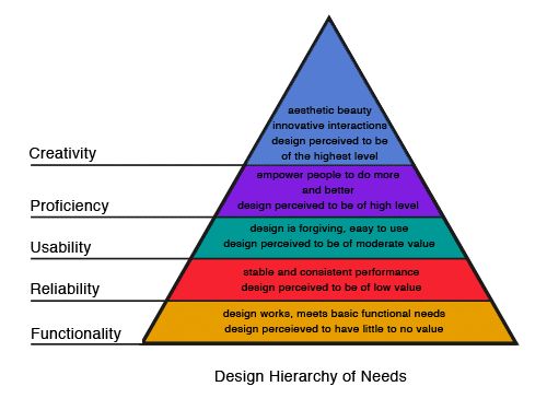 Steven Bradley, the author of several design books, including Design Fundamentals: Elements, Attributes, & Principals, translated Maslow’s hierarchy of needs into a hierarchy of needs for the design.