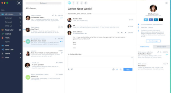 Newton Mail boasts a similar list of features but is not limited to working just with Google’s products. It has mail tracking, undo send, and extensive integration with other popular services such as Trello, Evernote, Salesforce, and Zendesk. It’s available for IOS, Android, and Mac, and a free 14-day trial is available.
