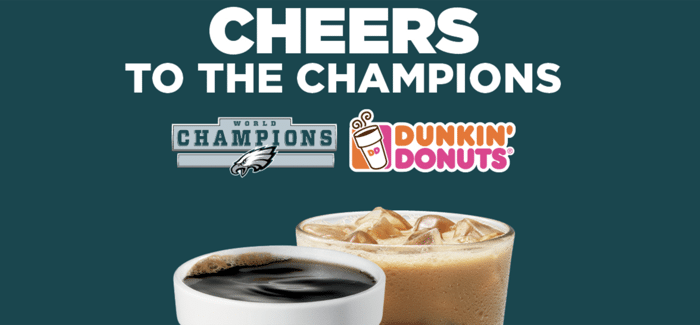 Dunkin’ Donuts turned wins by the Philadelphia Eagles into free coffees and huge mobile downloads.