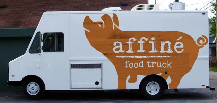 Be creative! There are a million different visual ways to communicate “taco,” “barbecue,” “ice cream,” or “sushi.” Affine’s amazing wood-grain hog graphic expresses their love of creative charcuterie recipes.