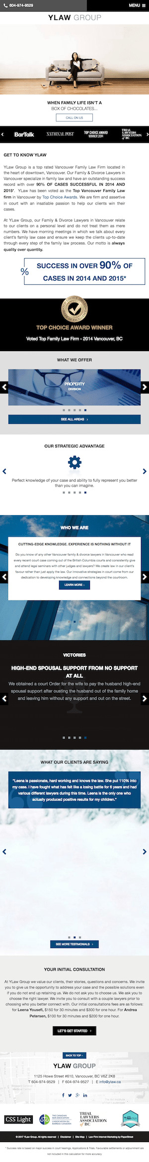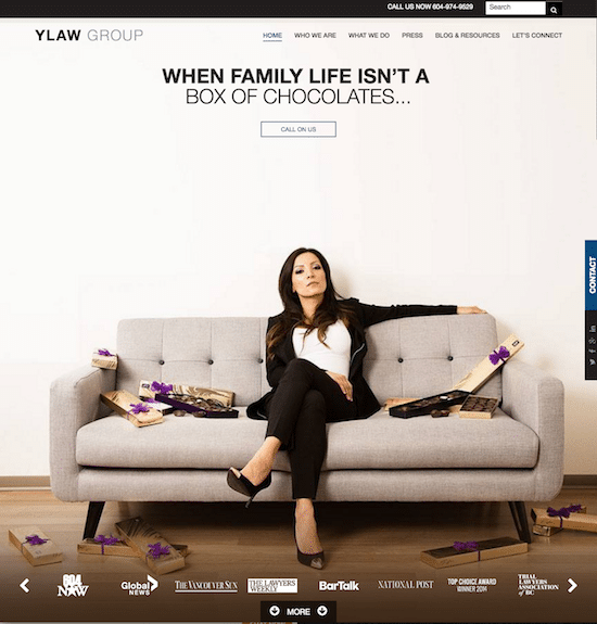 Another terrific example is Ylaw Group, a Vancouver family law firm. Look at how effectively they use rotating Hero images and simple text to underscore the types of issues people worry about when dealing with divorce.