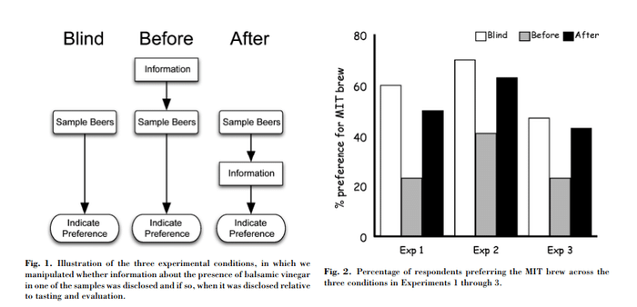 The study revealed that participants who were warned about an unpleasant “secret ingredient” (balsamic vinegar) in a beer showed the lowest preference for that beer than other participants who were not warned.