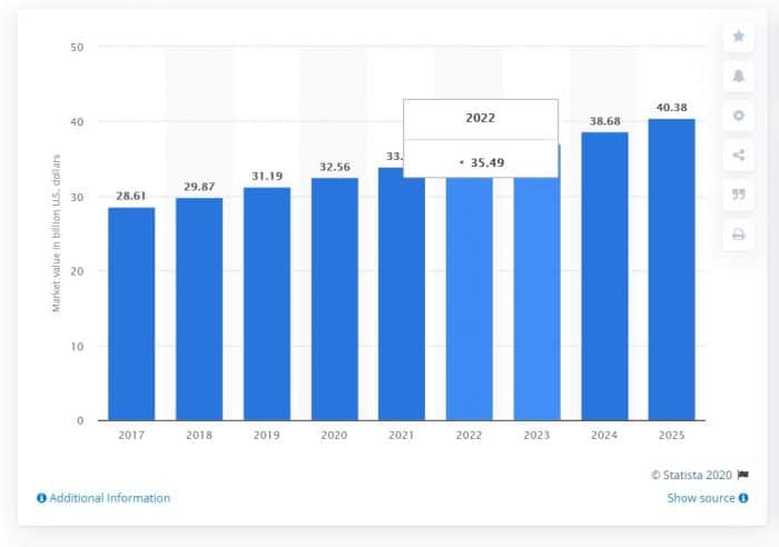 Household cleaners market value worldwide from 2017 to 2025 (in billion U.S. dollars)*