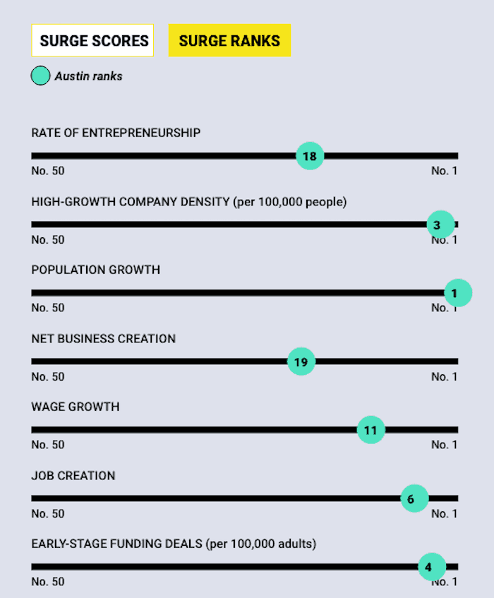 Here’s how the Surge Cities Index from Inc. ranks Austin: