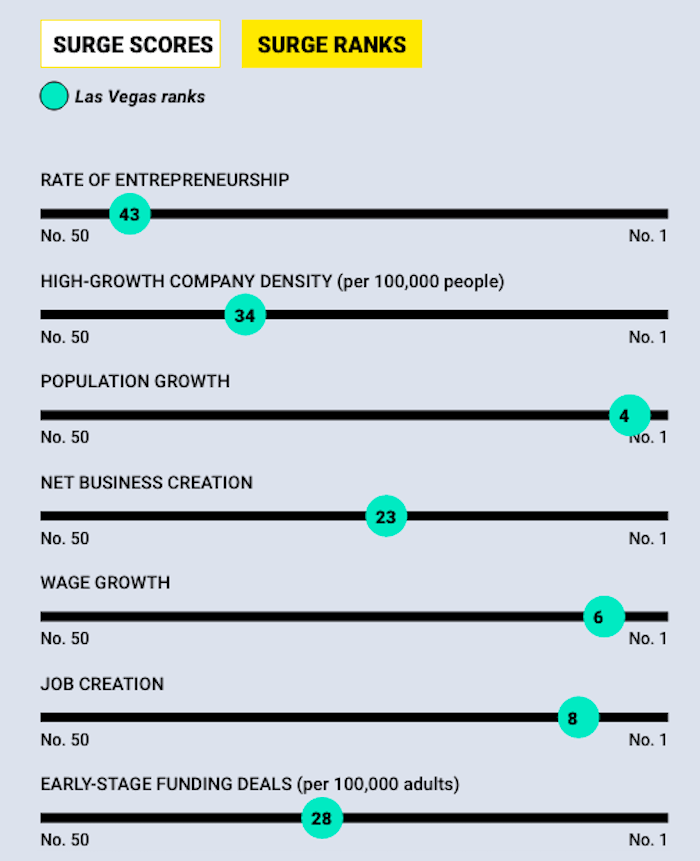 Here’s how the Surge Cities Index from Inc. ranks Las Vegas: