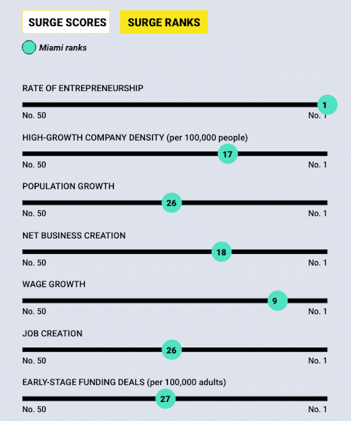 Here’s how the Surge Cities Index from Inc. ranks Miami: