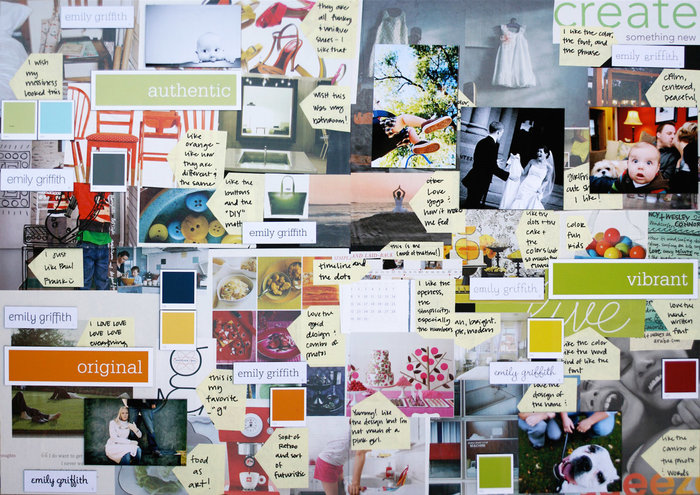 A mood board is a collage with images expressing a central theme. Photographs, magazine clippings, textures, works of art, color palettes, words, illustrations – any visual medium communicating your concept or “mood” is fair game.