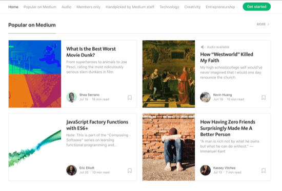 Medium’s layout is very clean and simple, making the words on the page the primary element.