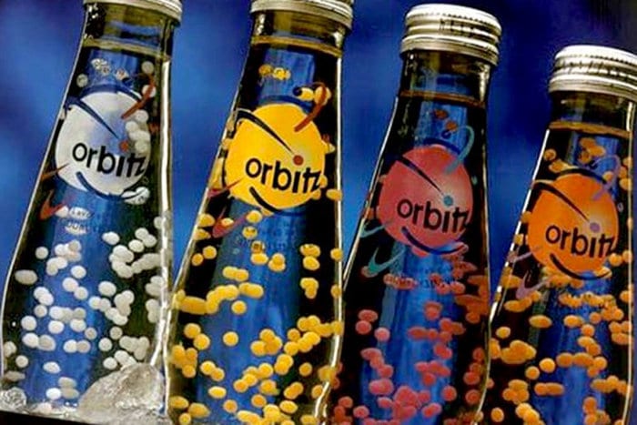 Orbitz was a non-carbonated fruit beverage filled with suspended balls of gelatin. To put it simply, bottles of Orbitz looked like mini lava lamps.