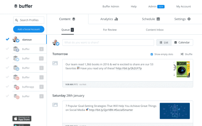 If you’re looking for another social media management option, Buffer is worthy of your time. The service has been around for about as long as Hootsuite, and although the two are often mentioned in the same breath, Buffer is different enough to stand out.