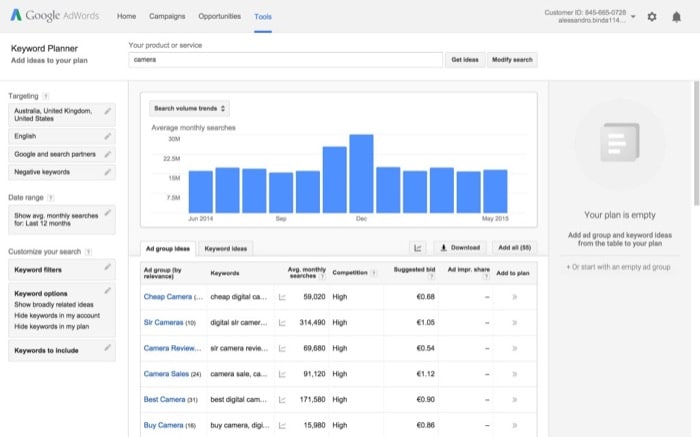 Prefer a streamlined process? Google Adwords lets its users launch campaigns directly from your keyword research, making it a one-stop shop for keyword success.