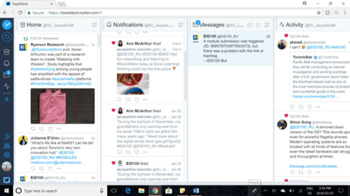 This is where Hootsuite comes in. This Vancouver-based company provides a web-based interface that collects your social media presences into one centralized location.