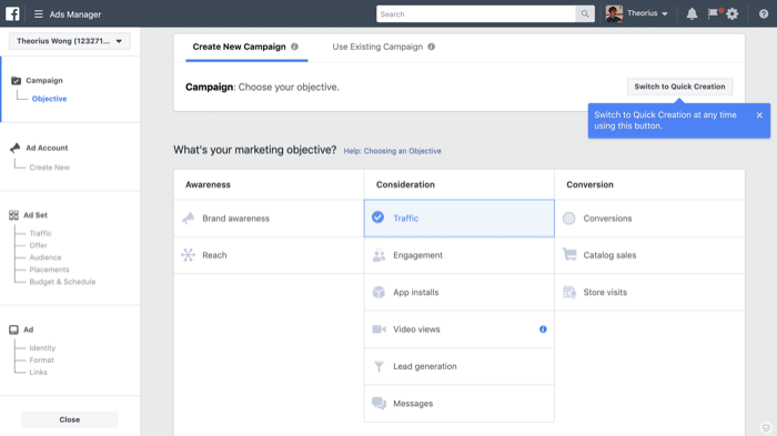 Facebook can help you determine the right ad type for your business based on which market you’re looking to target. There are a variety of ad types, including: