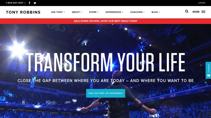 Tony Robbins’ ideal customer wants to transform their life. His website is designed to build excitement – from the oversized text inviting you to “Transform Your Life” to the rockstar-esque video that scrolls in the background behind that text. Robbins’ website presents energy and a clear message of self-improvement to his visitors.