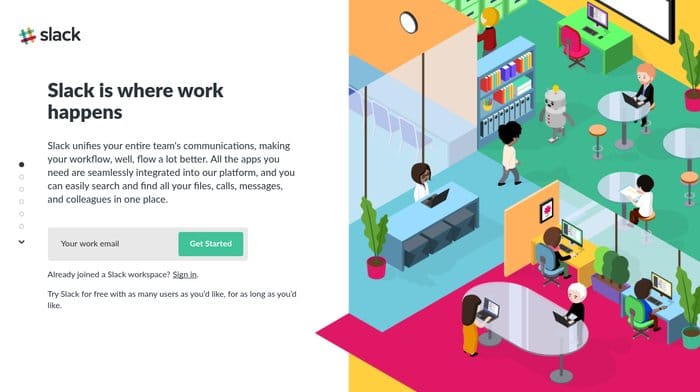 Slack’s website provides a great example. The grey dots on the left side of the screen allow you to click through an explanation of how Slack works and Slack’s benefits. The final dot brings you back to the call to action above.