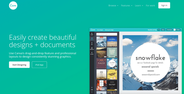 Snappa’s impressive Pro service starts at $10 per user/ per month, but you can try Snappa out with its free version.