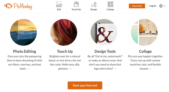 PicMonkey’s robust photo editing features are easy to use. It also offers a tutorial section to help you improve your editing and design skills.