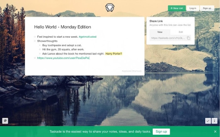 Why it’s worthy: Taskade is a task and to-do list app focusing on flexibility, simplicity, and ease of use. Its simple design hides many features, including robust collaboration tools like chat (video, audio, and text) and sharing and collaborating on lists.