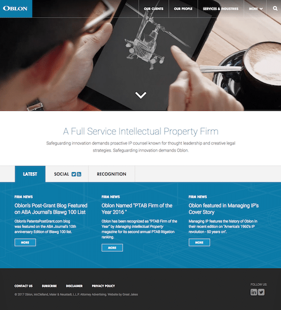 Don’t be afraid to be different. For example, take a look at how Oblon, McClelland, Maier & Neustadt, L.L.P., a full-service intellectual property firm, showcases technology on their site in a video (you’ll need to visit the site to see the animation).