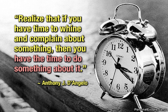 As much as some people like to let off steam, doing so is counter-productive. Author Anthony J. D’Angelo reminds us, “if you have time to whine and complain about something, then you have the time to do something about it.”