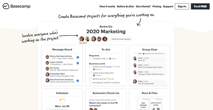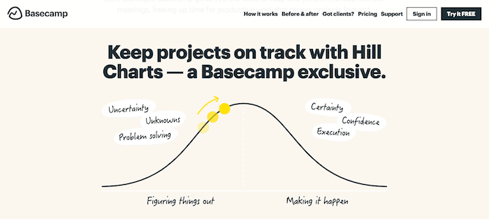Project management platform Basecamp has been at the forefront of hand-drawn illustration for years. The current iteration of their website uses hand-written notations overlaid over screenshots to help explain how their service works and highlight certain features. These call-outs are visually unique on the page and stand out as a result.