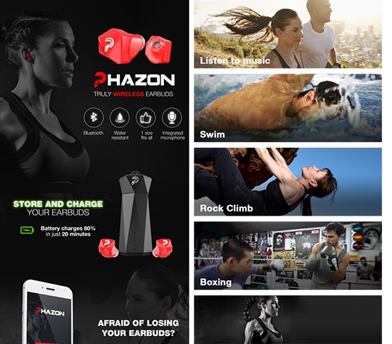 Phazon, a manufacturer of wireless earbuds, was on top of their product imagery game when they earned 1816% of their original Indiegogo fundraising goal.
