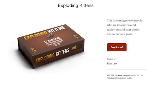 So make sure these vital updates are shown the same care as the rest of your campaign page. Professional email templates and graphics will go a long way toward building trust. The Exploding Kittens card game Kickstarter campaign did an excellent job of tying their updates in with the rest of their design.