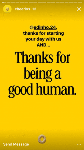 Cheerios users Instagram Stories to send positive personal messages to its followers