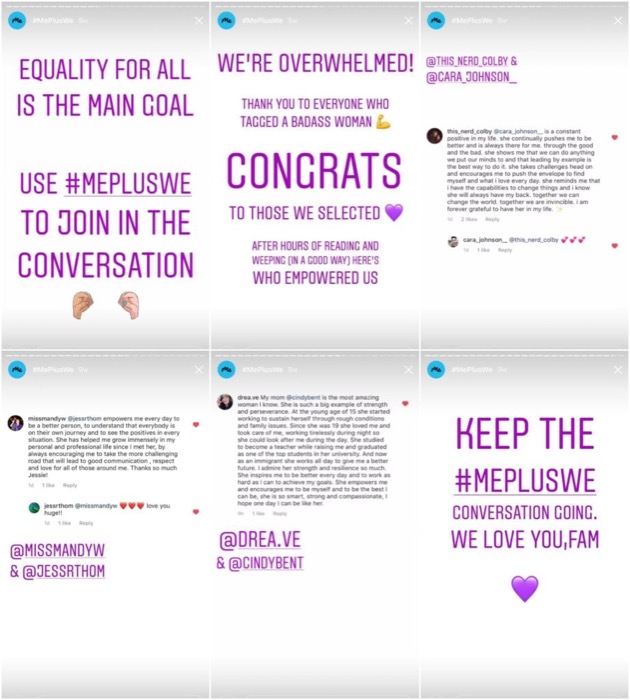 MeUndies uses text-only stories to not only make shout-outs to followers, it also uses them to promote hashtag campaigns such as #MePlusWe.