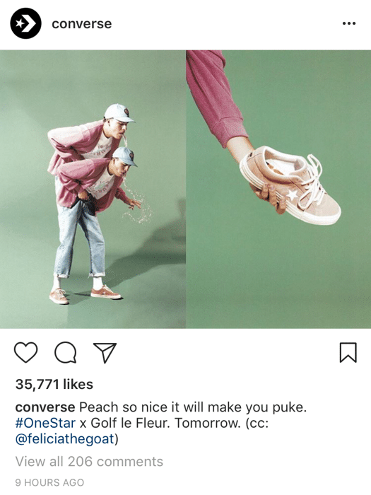 Shoe company Converse integrates Stories tightly with its other Instagram posts, as they’ve done here with the recent launch of a new shoe collaboration.