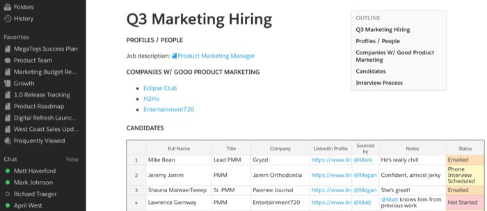 Quip initially started as a collaborative word processor and spreadsheet app. Over time, the company has built new features like team chat, presentations, and document history.