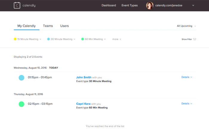Calendly is one of those apps that solves a single problem well. For people who take a lot of meetings, it’s an invaluable service that makes answering “when are you available?” a simple click away.