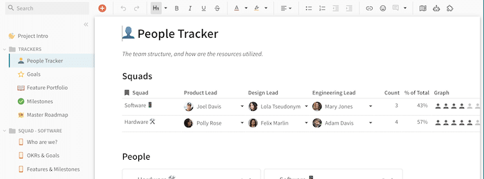 You can embed many types of content within a Notion “page,” like tables, calendars, galleries, Kanban tools and boards, and much more. People can collaborate in real time and comment and tag items.