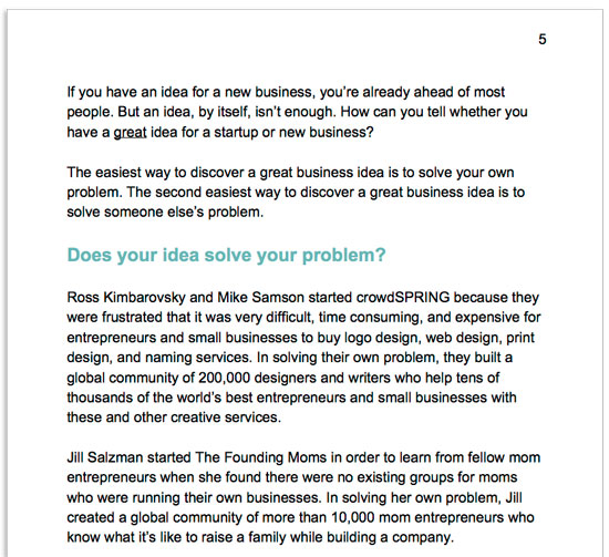 Here’s a peek at a page from the first chapter of the book: Discover your great business idea.