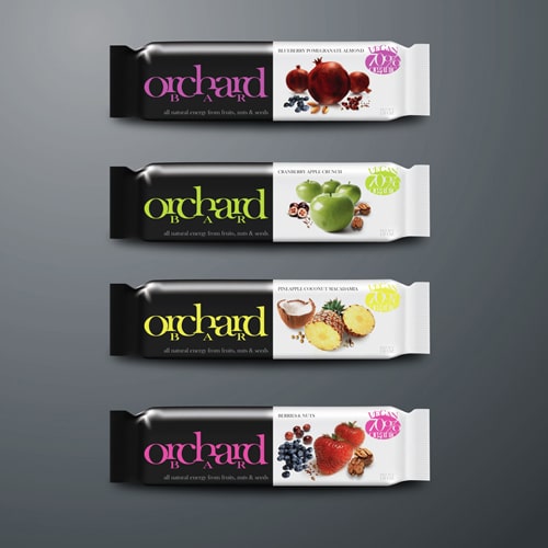 The fifth one was packaging for the ORCHARD snack bars, awarded here on crowdSPRING two years ago, and I am so glad that the buyer had an eye for something that is not the typical perception of what a healthy snack bar should look like. They always make them too busy with design, probably to confuse the consumer and grab the money.