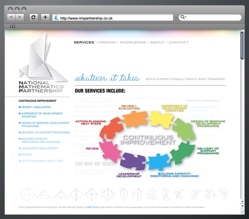 The seventh is identity done for the NATIONAL MATHEMATICS PARTNERSHIP in the UK, here displayed on the website, where the letterhead contains instructions to fold an origami dove instead of trashing it when not needed.