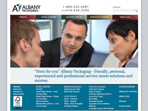 c Albany Packaging – Branding Project. Client has asked for a complete redo of its image – externally and internally audiences. Logo and my latest designed web project completed so far with more projects in the works.