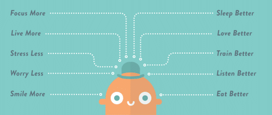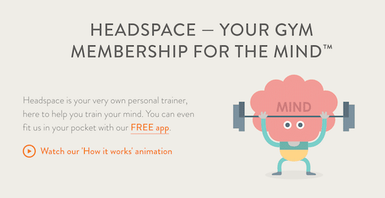 Headspace uses friendly looking illustrated characters and colorful splashes of color that are still easy on the eyes to remind visitors that their approach to meditation is beneficial, simple, and accessible.