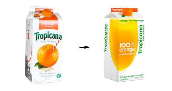 In 2009, Tropicana revealed a new packaging design for their Pure Premium orange juice. Less than 60 days later, Tropicana announced that it would return to its original design.