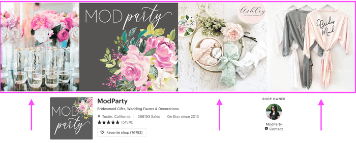 The top of your Etsy shop is valuable real estate. This is where your banner or cover photo will go. This area sets the visual tone for your shop. And when used effectively, it will memorably differentiate your shop from your competitors.