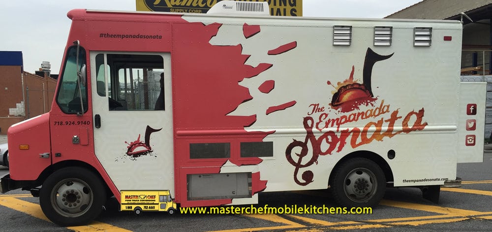A bold color scheme and large graphics will help loyal customers spot you far away or across a crowded street. Empanada Sonata’s unique, bold red splatter design makes it easy to spot and identify.