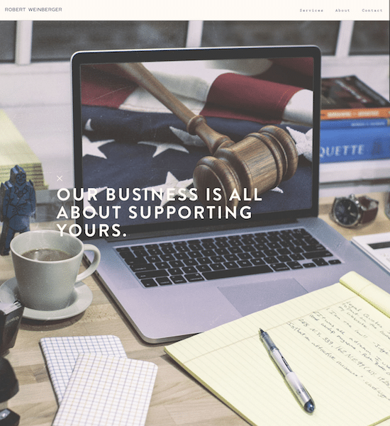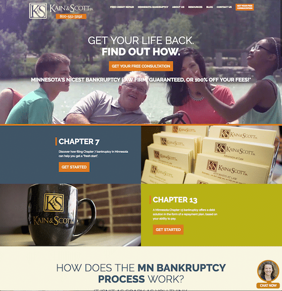 Here’s a great example from Kain & Scott P.A., a Minnesota bankruptcy law firm. It’s pretty clear what type of law the firm practices. In fact, if you visit their homepage, you’ll see that the Hero is actually a rotating video, giving you a fresh, unique look at the firm’s attorneys.