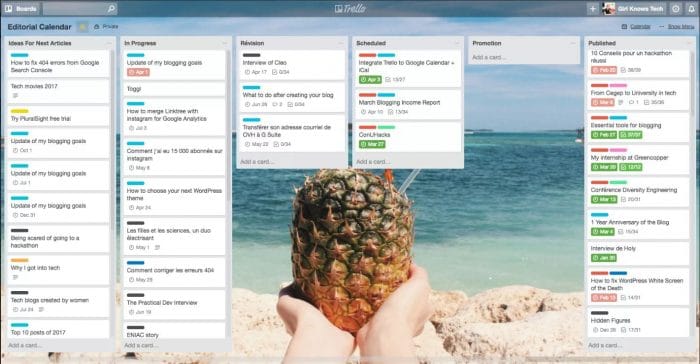 Popular choices of programs used to create editorial calendars include Trello (we use Trello at crowdspring), CoSchedule, and Asana.