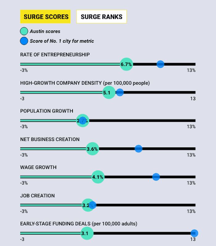 Here’s how the Surge Cities Index from Inc. ranks Austin:
